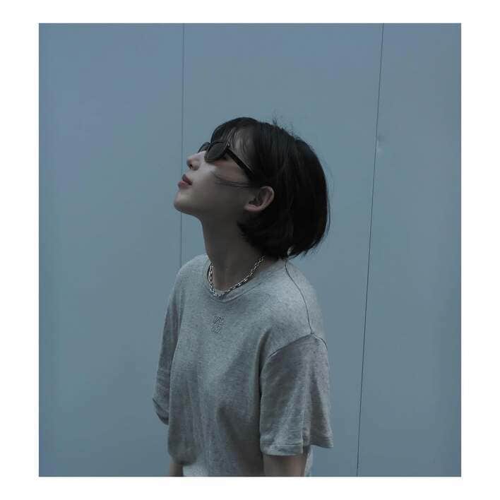 タンクトップ姿の無造作なヘアスタイルと表情でアンニュイな雰囲気が漂っています。