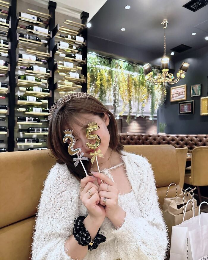 お店で「2」と「5」の形をしたスティックを持っているショットなど、幸せそうなバースデーショットをたくさん投稿しました。