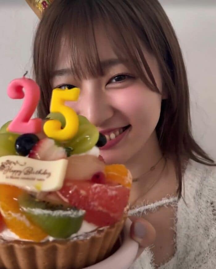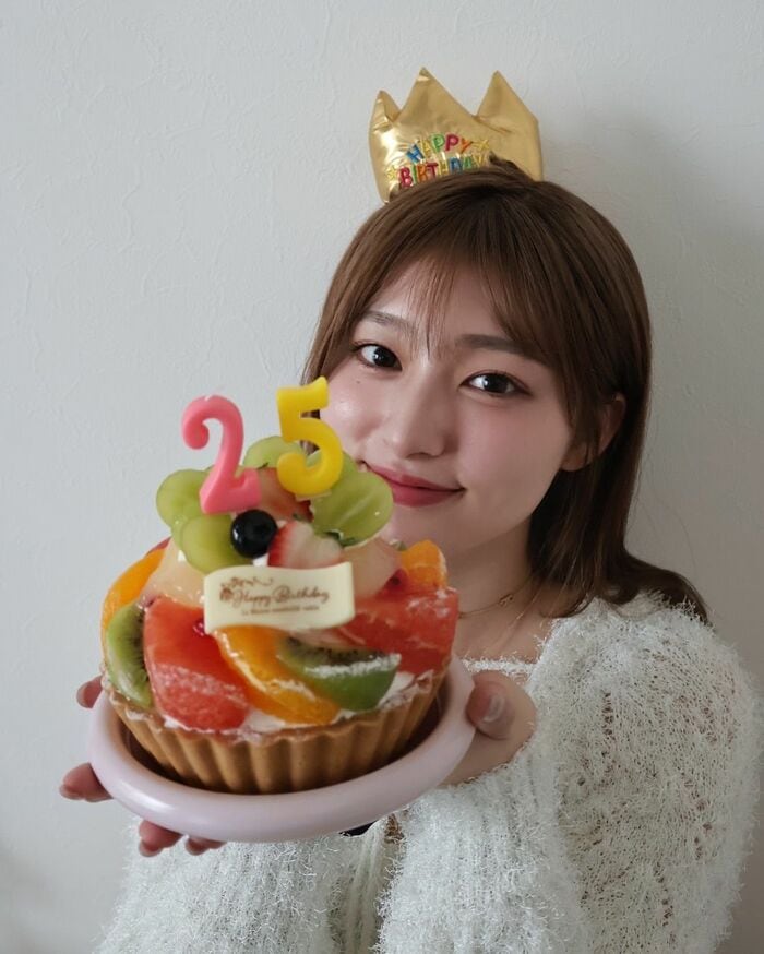 25歳の誕生日を迎えたことを報告し、ケーキやタルトを持ったバースデーショットを公開しました。