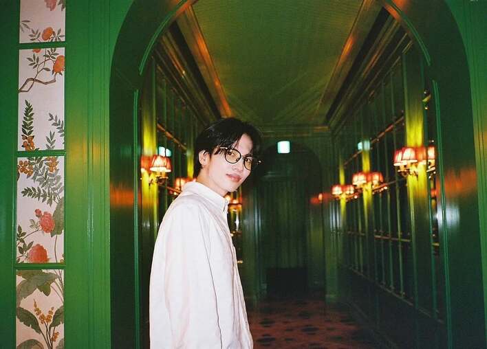 そこには、緑を基調とした高級感あふれる店内の廊下でカメラに振り返る志尊さんの姿が。