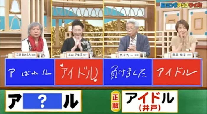 正解は「アイド(井戸)ル」。入山さんと奈美さんが見事正解。