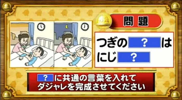最後は、ダジャレ穴埋めの問題。「?」に共通する言葉を入れてダジャレを完成させてください。