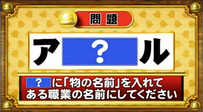 次は、穴埋めサンドの問題。「?」に「物の名前」を入れて、ある職業の名前にして下さい。