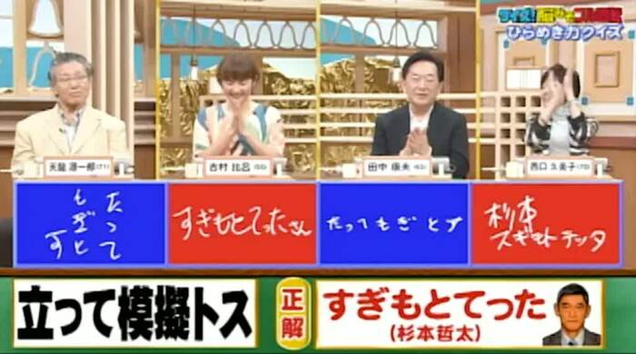 正解は「すぎもとてった(杉本哲太)」。古村さん、西口さんの2人が見事正解!