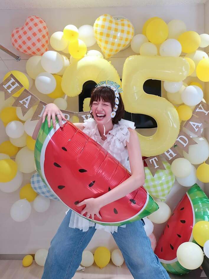 さらに、大きなスイカのバルーンに、口を開けて今にもかぶりつきそうなおちゃめな佐藤さん。