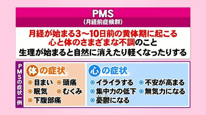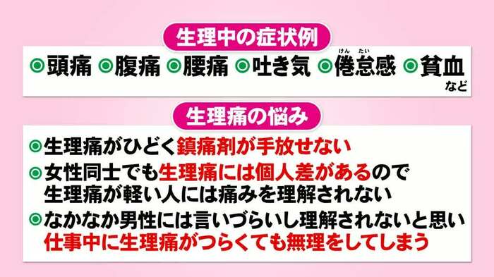 「生理痛」や「PMS(月経前症候群)」についてもトーク。