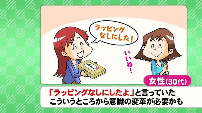 という結果となり、SNSにも「友達へのお土産ならラッピングは不要」「渡す時に一言添えれば、いいのでは?」と過剰なラッピングの廃止に肯定的な声が集まりました。
