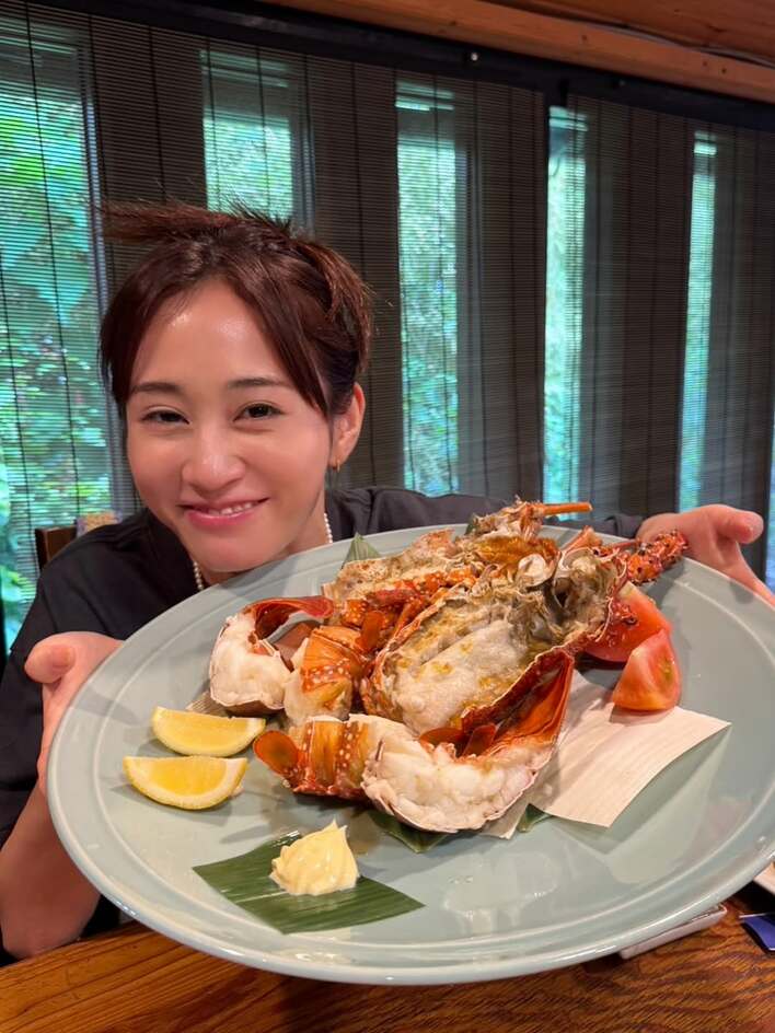 また、大きなエビが乗ったお皿を持つ前田さんの様子も。