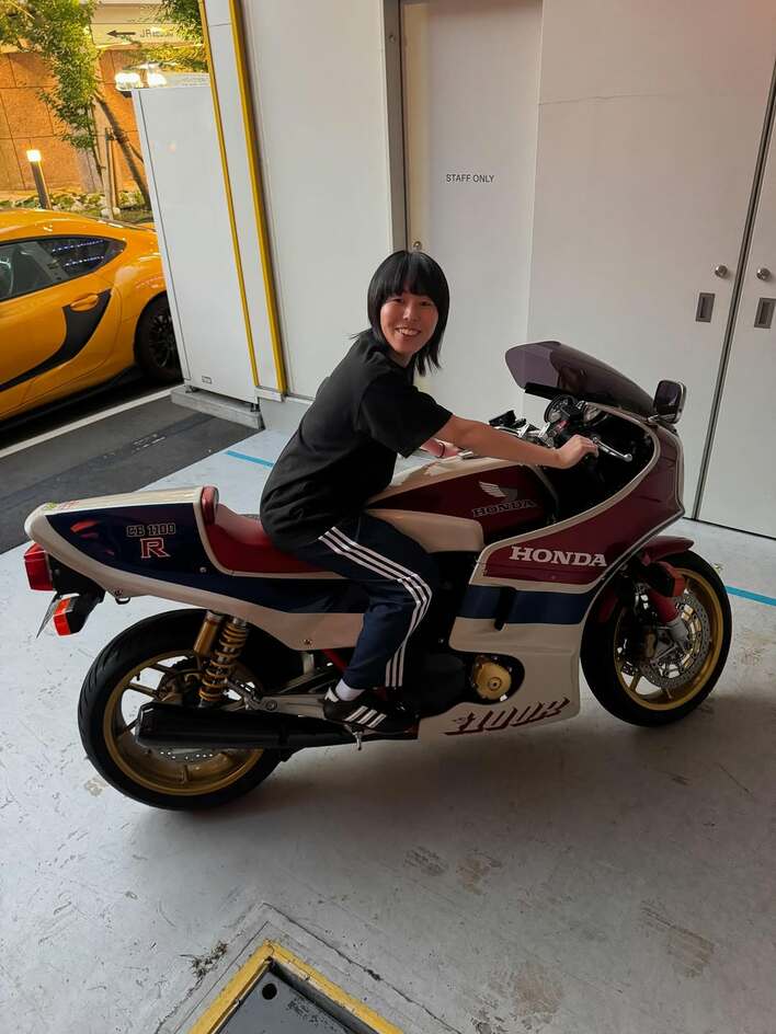 写真には、RGさんの“愛車”『ホンダ CB1100 type R』にまたがる、誠さんの姿が。はじける笑顔を見せ、とってもうれしそうです。