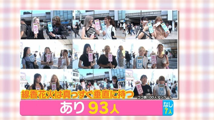 都内で男女100人に「線香花火は真っすぐ垂直に持つ」のは「あり?」「なし?」と聞くと…