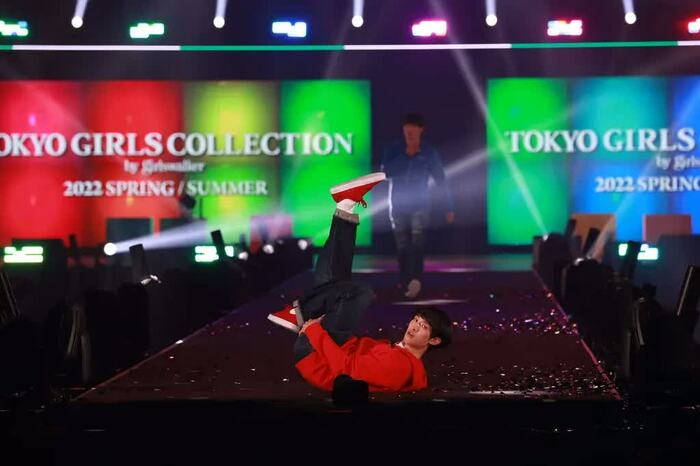 トップの向井さんは、ロボットのような歩きでランウェイを進むと、先端では背中をつき脚を上げ「ラウール!」とラウールさんのダンスを再現。岩本さんは、パーカーのチャックを下ろし自分の顔がプリントされたシャツをアピールし、目黒さんは顎に手を当てポーズを決めました。