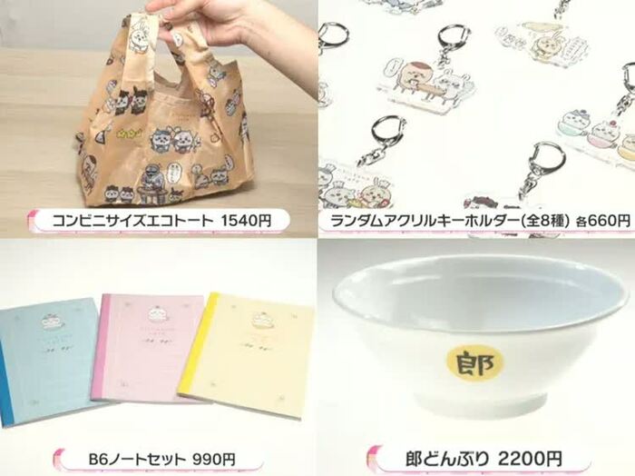 来場するみなさんのお目当てはカフェメニューだけでなく、100種類以上もあるグッズです。全部で8種類あるアクリルキーホルダーやカラフルなノートのセットのほかにも、1日80個売れることもあるほど人気なのが、「郎どんぶり」。これさえあればおうちでも郎ラーメンが楽しめちゃいますね。