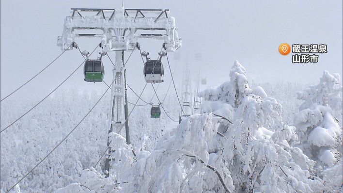山形市の蔵王温泉で、冬のシンボル・樹氷が見ごろを迎えています。