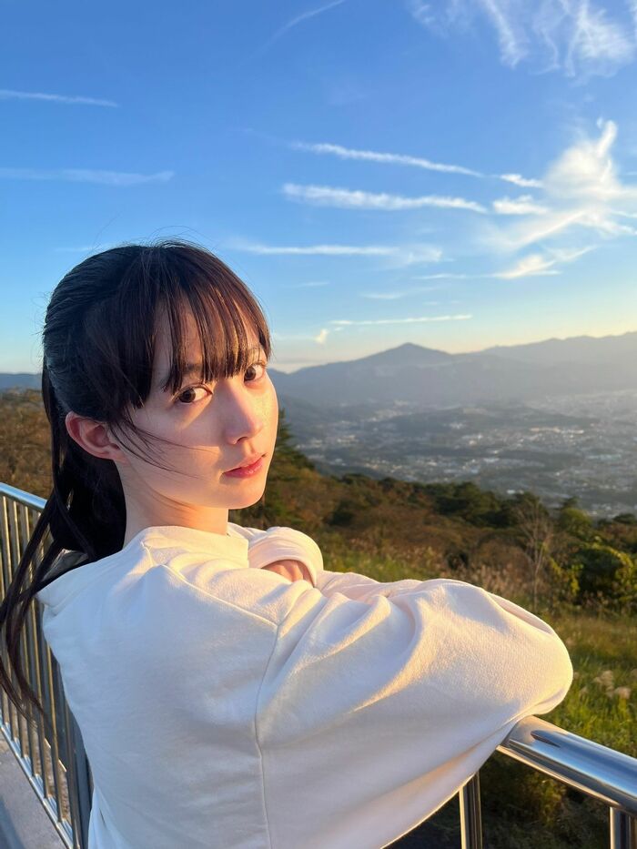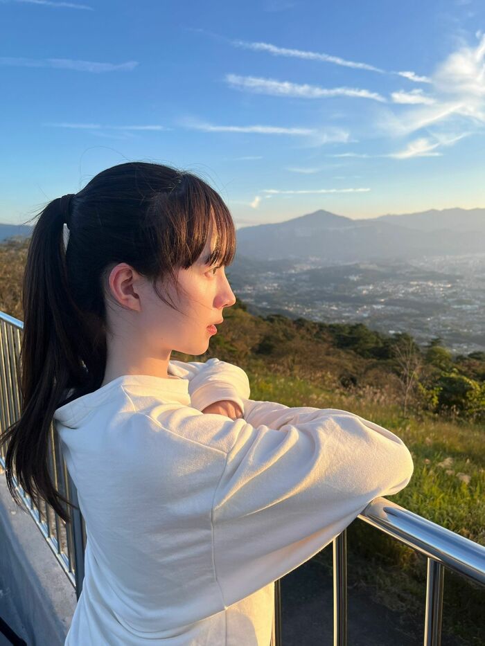 そんな菊池さんは「練習オフだった日」とコメントし、ポニーテールにスウェットのラフなスタイルで、景色の良い場所から遠くを見つめているショットを公開。透明感あふれる美しい横顔が、夕日に照らされ少しオレンジ色になっています。