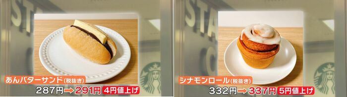 「シナモンロール」は332円から337円になります。 (※すべて税別価格)