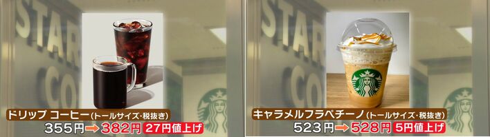 スターバックス コーヒー ジャパンは2月15日からコーヒーやフラペチーノなど全体の8割以上のドリンクを4円~28円値上げすると発表しました。