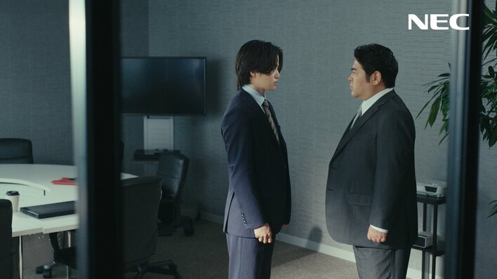 CMでは、とある会社で働く部下・菊池さんと、上司・皆川さんが登場。会議室でNECネッツエスアイについて語りますが、話が進むにつれて2人の熱量はどんどん高まります。