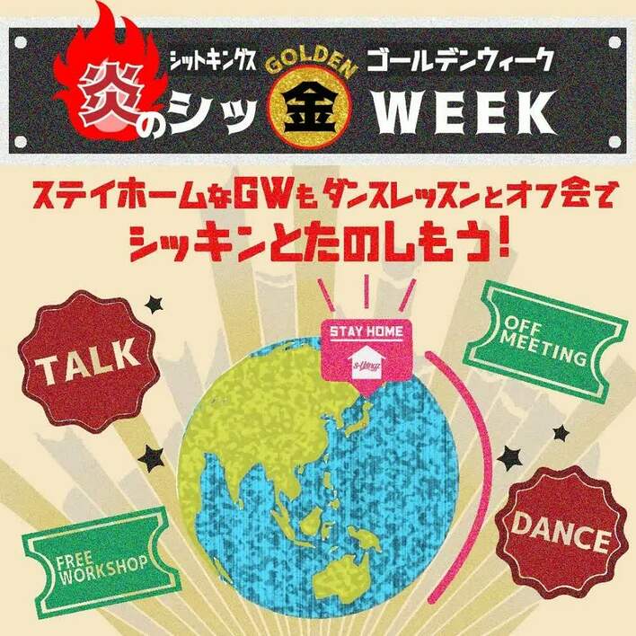 ダンスパーフォーマンスグループs**t kingz(シットキングス、通称:シッキン)が、「炎のシッ金WEEK」(ほのおのしっきんうぃーく)と題し、ゴールデンウィークに無料オンラインダンスレッスンとYouTube ライブ配信を使用したオンライントークイベントを開催することが発表された。