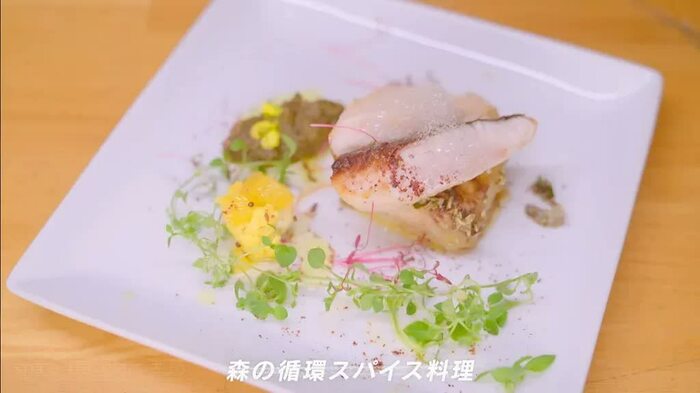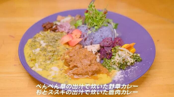 独歩さん:スパイスカレーでは出汁を使うことがあると思うんですけど、ぺんぺん草で作った出汁。あとは、杉やススキなどを主体に出汁を作って、そこにお肉や今ある野草の7~8種類を混ぜ込んで、カレーを作っています。