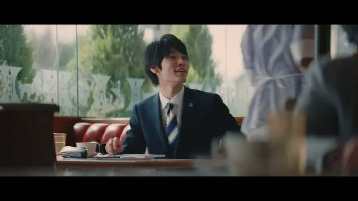 「新人」篇は、カフェで偶然、浜辺と大学の先輩である萩原が再会するシーンから始まる。萩原が“職場にいる先輩の天然ぶり”について、浜辺に話していると、偶然その先輩がカフェに入ってくる。