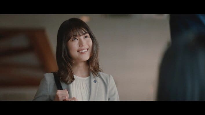 萩原が慌てて挨拶をした先輩は、なんと浜辺の姉である有村だった。そのことに気付いた浜辺は、「さっき先輩がね〜」 といたずらな表情で有村に話しかけ、焦った表情の萩原を真顔で問い詰める有村。といった“身近なリスク”を描いたストーリーとなっている。