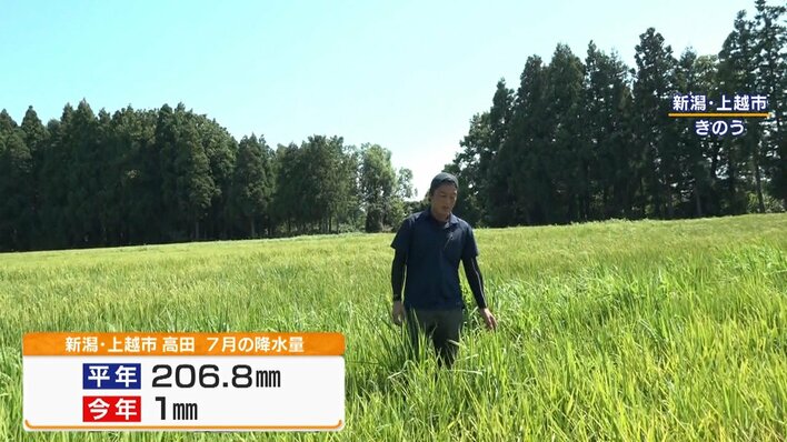 平年、上越市の7月の降水量は約200mmですが、今年(2025年)7月に降ったのはわずか1mmほどでした。