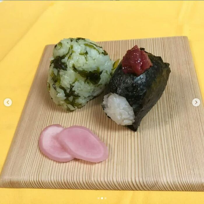 とコメントし、梅としそわかめの2種類のおむすびを披露した。