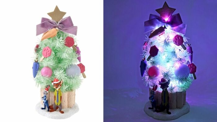 淡いカラーのツリーには、サンタクロースのコスチュームを身に着けたジュディ・ホップスとニック・ワイルドが目を引く、クリスマス限定デザインの特別感のあるアイテムが勢ぞろい。
