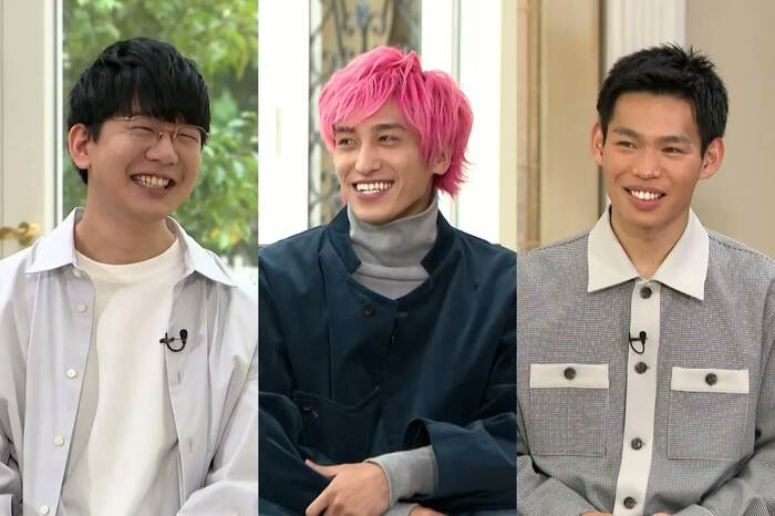 兼近大樹さん(EXIT)、花江夏樹さん、加賀翔(かが屋)さんが鼎談。