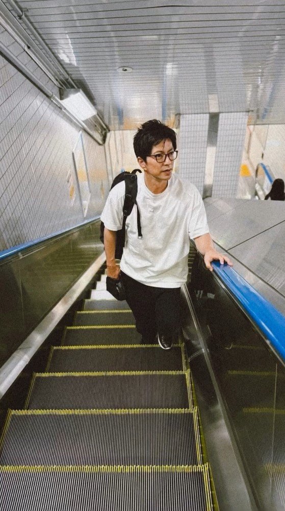 そこには、白のシャツに黒のパンツをはき、黒メガネをかけたシンプルな格好でエスカレーターに乗る姿が。見慣れた景色に突然、変装なしの大沢さんが現れると、思わず二度見をしてしまいます。