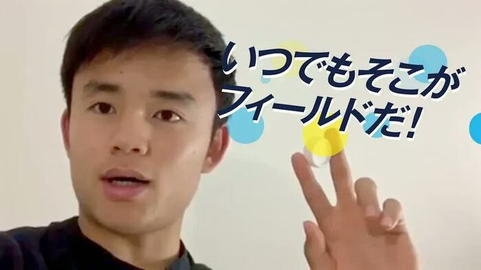「サッカー」動画では、プロジェクトのアンバサダー である5名のサッカー選手(久保建英選手、中井卓大選手、武藤嘉紀選手、森重真人選手、吉田麻也選手) の協力のもと、子どもたちが家の中にある道具でも 簡単に楽しめる、ペットボトル飲料のキャップを使っ たスポ―ツ「フィンガーフットボール」の試合動画 「GENKIRIN CUP 2020」を制作。想像力ひとつで家の中がフィールドに様変わりすることを伝えている。