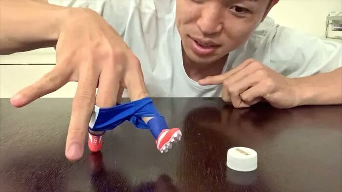 子どもたちが家の中にある道具でも簡単に楽しめる、ペットボトル飲料のキャップを使った新た なスポ―ツ「フィンガーフットボール」の動画『GENKIRIN CUP 2020』。それひとつで、家の中があっという間に フィールドに様変わりしてしまう想像力の大切さと、今は存分に楽しめないサッカーの魅力を伝える。