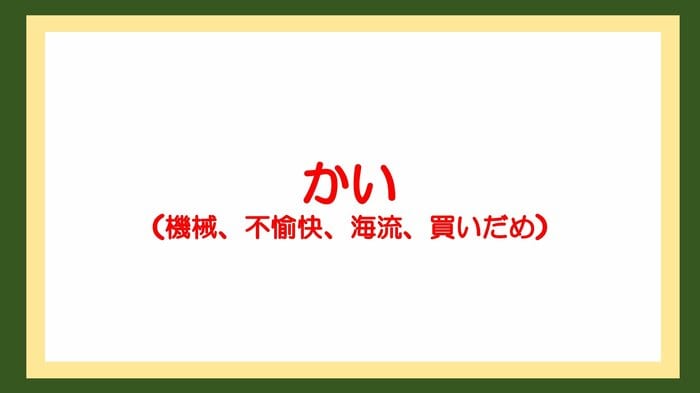 正解は「かい(機械、不愉快、海流、買いだめ)」