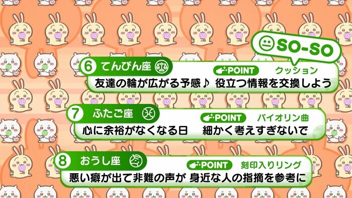 『めざましテレビ』で放送中の「ちいかわ占い」 テレビ放送がない日はお休みで、月~土:朝7時以降に更新予定です。