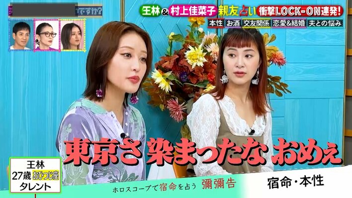 「友だちは変わった人が多い」という占いには、隣で聞いていた王林さんが「そうだと思います!」と爆笑。村上さんは“変わった友だち”として、王林さん、バービーさん、川村エミコさんを挙げ、タイプが合わない人とは「会話が合わない」と明かしました。