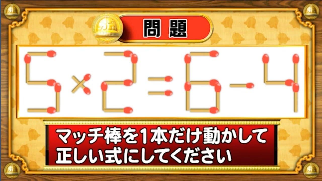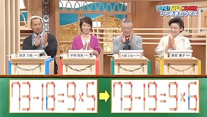 正解は、左の式の「8」から1本マッチを動かし、「19」にします。その1本を右の式の「5」に足して「6」にします。そうすると「73ー19=9×6」となり、正しい式になりました。