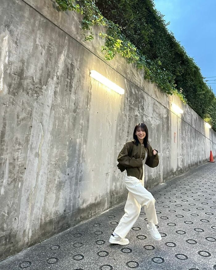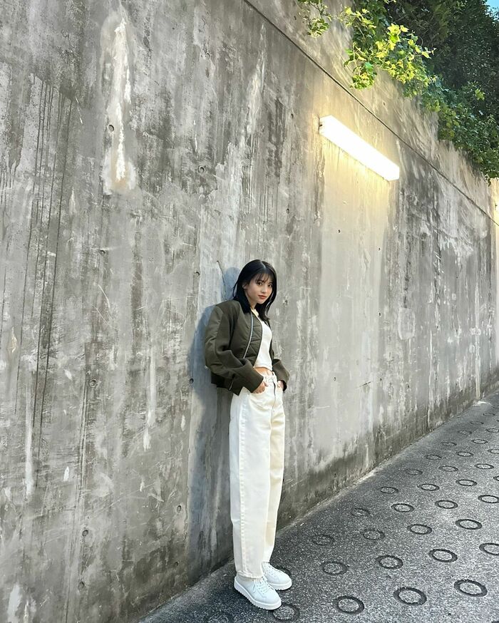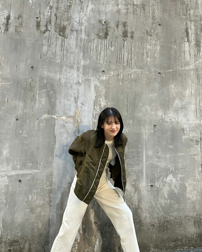 公開された写真には、白のトップスとデニムパンツにカーキのゆったりとしたアウターを羽織ったコーディネートでカメラに向けて笑顔を見せる出口さんの姿が!