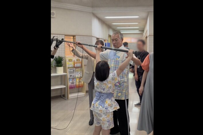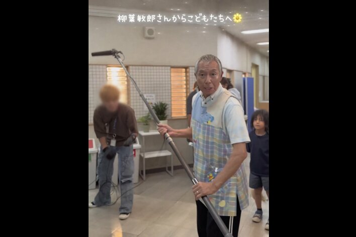 「柳葉敏郎さんがこどもたちに教えたこととは… ただ言葉で伝えるのではなく、実際にやりながら教えて下さいました」という文章とともに投稿された動画は、福原さんや生田絵梨花さんが見守るなか、柳葉さんが撮影の際に音声スタッフが使うガンマイクを手に登場するところからスタート。