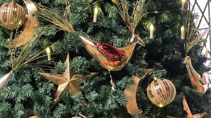 ツリーには1000個を超えるオーナメントがちりばめられていて、全てが映画と同じ美術スタッフの手作業で作られたものだそう。