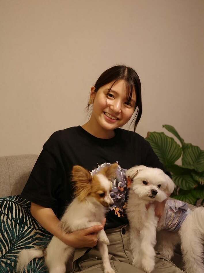 川島さんは「ちゃちゃまる vlogでもたくさん登場していくとおもうので、皆さまよろしくお願いします」と、新たなワンちゃんの名前も紹介!2匹のわんちゃんに囲まれて、とっても幸せそうな笑顔です!