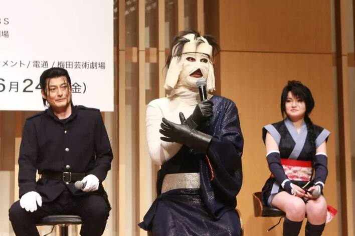 続けて、「僕自身も原作ファンなので、感慨深い思いがありますし、『早くこの包帯の暑さになれないといけない』と。わかりづらいかもしれないですが、(包帯の)下、ビショビショです」と明かし、会場に笑いを誘いました。
