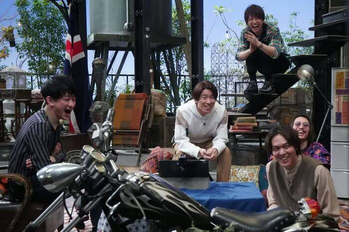 秘密基地に集まり話しているだけで、もうすでに楽しそうな横山裕、村上信五、丸山隆平、安田章大、大倉忠義。