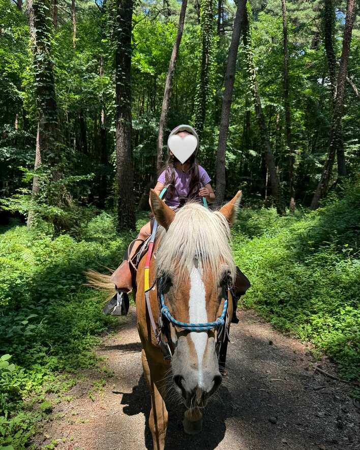 続いては、娘が1人で馬にまたがり、森林の中の散歩を楽しんでいる様子をおさめたカット。