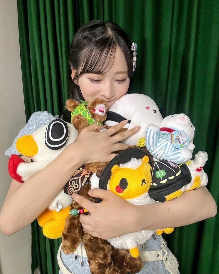 さらに、こぼれ落ちそうなほどのたくさんのぬいぐるみを抱きしめているショットや