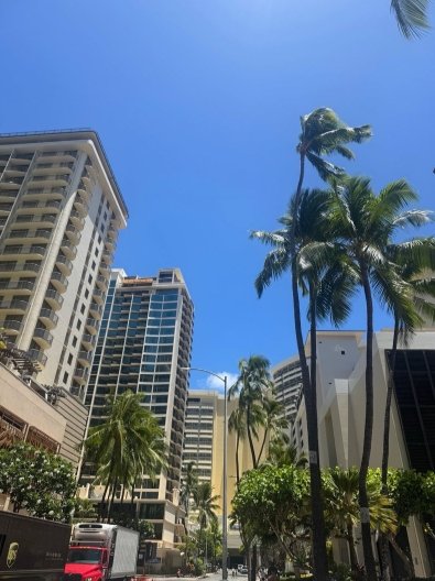 青く澄み渡った空に、高層ビル、そして高いヤシの木が写った写真を投稿し、「きたよ ハワイってやっぱりハワイって感じが素敵」と、高揚感を隠せない様子!