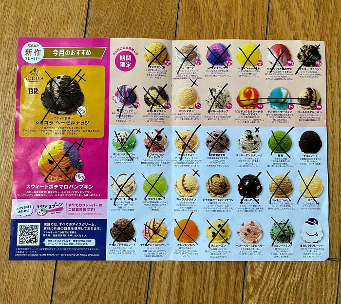 そして、冷凍庫を開けるたびにサーティワンアイスで埋め尽くされている光景を見て幸せを感じていたゆんさん。また、アイスを食べるときにフレーバーのチラシに「×」印を付けているといい、楽しみの1つになっているということです。