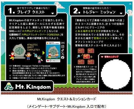 六甲山観光株式会社(本社:神戸市灘区 社長:妹尾昭孝)が運営する日本最大級のアスレチック施設、六甲山アスレチックパークGREENIA(グリーニア)では、RPG(ロールプレイングゲーム)をテーマにした新アスレチックエリア「Mt.Kingdom(マウント・キングダム)」が2025年7月19日(土)にオープンしました。