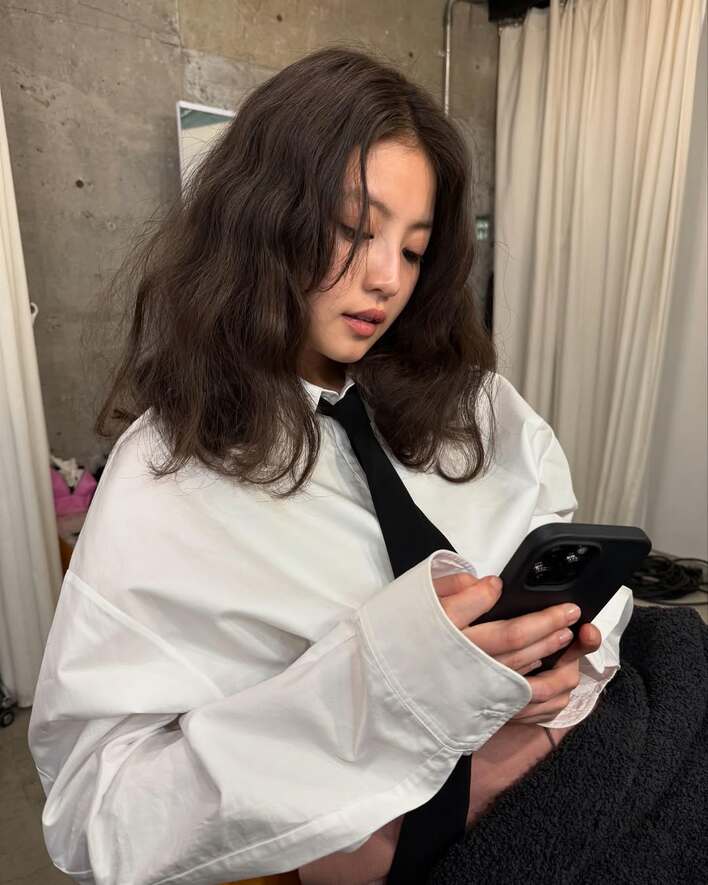 ゆるいパーマヘアも相まって、モード感あふれる仕上がりに。