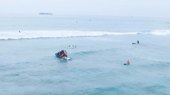 動画の冒頭では、美しい白波がたつハワイの海の様子が。ドローンで撮影されたと思われる映像は、青い海の上を滑らかに進みます。