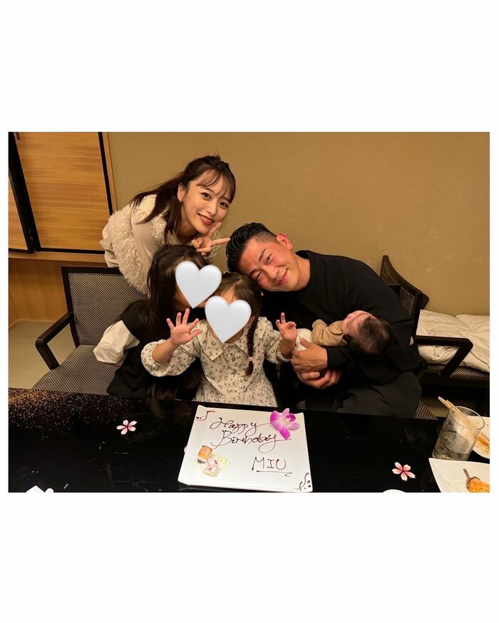 公開されたショットでは、「Happy Birthday」と書かれたプレートを前に、長女と次女、笑顔で三女を抱っこする太田さんの姿が!後ろにはピースサインをした近藤さんの姿も見られます。